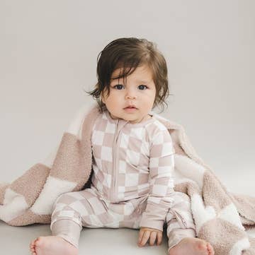 Bamboo Baby Unisex Clothing Zip Romper | Latte Checkered