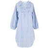 Long sleeve nightshirt made of soft, lightweight 100% cotton cambric. Peter pan collar and button placket. The bodice features multiple rows of pintucking and hemstitching. Very roomy fit. Long sleeves with button-banded cuffs. Machine wash warm, tumble dry low. Approximate garment measurements: XS/S (4-6) - bust 38", length 38" S/M (6-10) -Â bust 42", length 38.5" M/L (12-16) - bust 46", length 39"