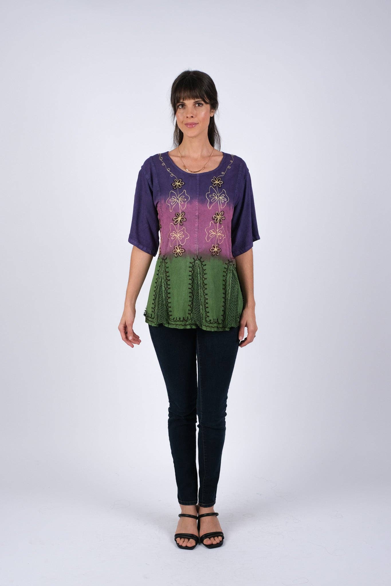 Shirt - Rayon / 2 Pack / O/S This stylish tunic features a bohemian design with intricate embroidery, a button-up front, and a flattering scoop neckline. Its relaxed fit and short sleeves make it perfect for casual or semi-formal occasions. Material: Rayon Fit: Relaxed Sleeves: Short Design: Embroidered Closure: Buttons Neckline: Scoop