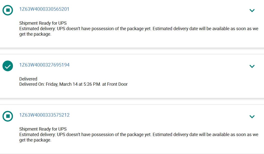 Items for 2nd and 3rd package were running very late and when I inquired last week as I have a deadline for a project, I was told they would go out that next week. But now they all say delivered MARCH 30th when I NEVER received them at all. Just the Honey Bee Frangrance Oil from the entire order. I am not getting a reply and I'm very concerned now. UPS also NEVER had possession of the other two packages. Please explain because this isn't making sense.
