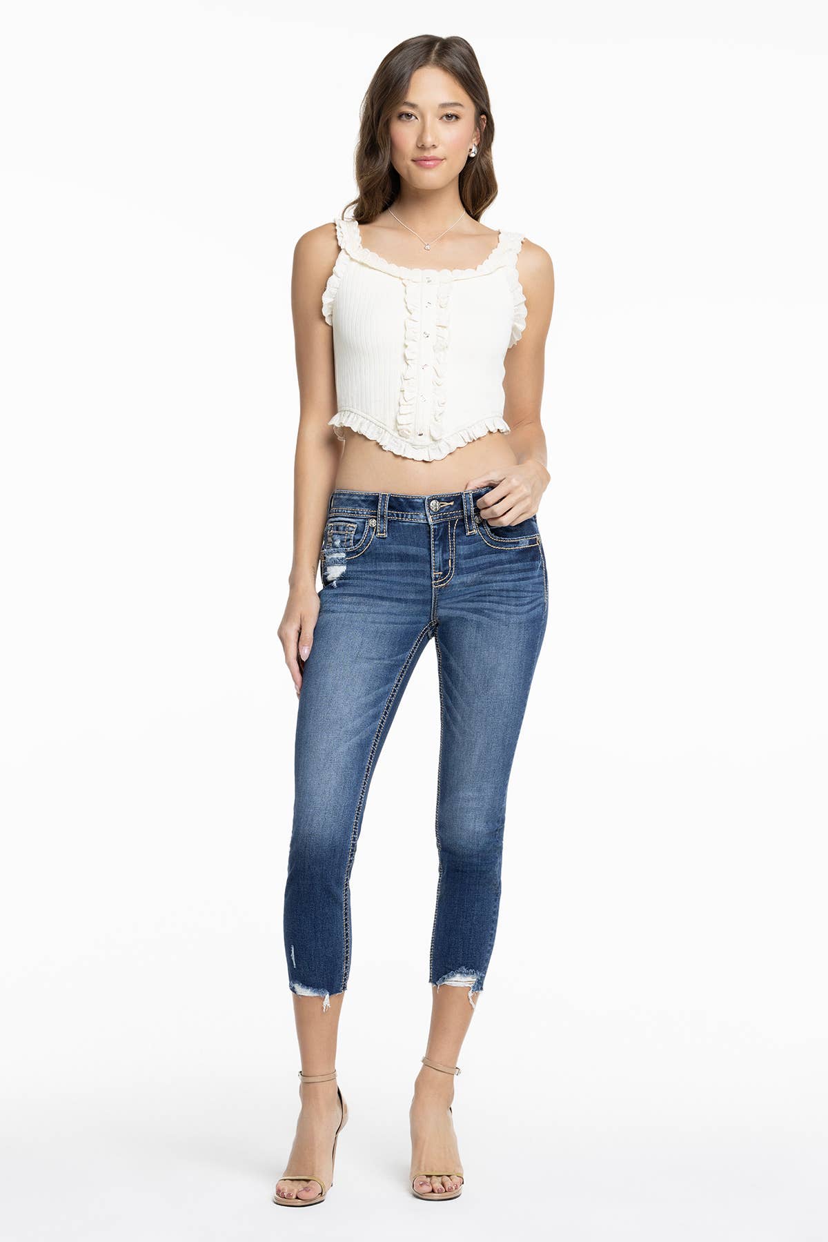 PLUS MID RISE CROP STRAIGHT JEANS-KC7478D-P