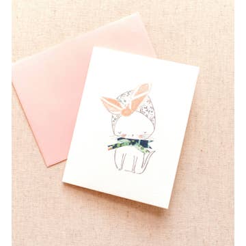 "So Stinkin' Cute" Hand watercolored little cutie clementine with squiggle frame and bow. Run off in small batch printing. A2 Standard Notecard 4.25x5.5'' Folded Dimension Orange Envelope 100# Ivory Card Stock Blank Inside Poly Sleeved