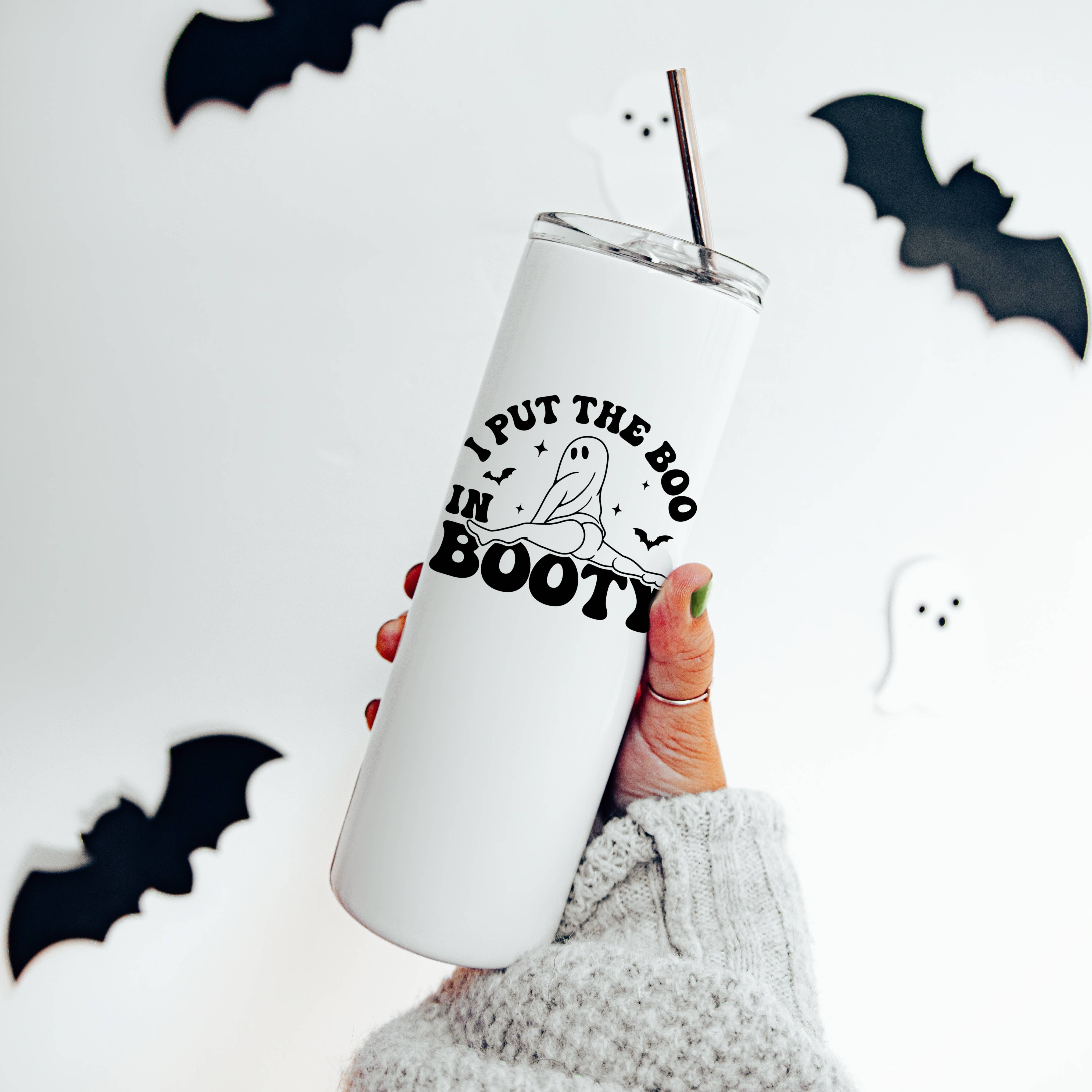 Wholesale Boo You Whore Stainless Steel Travel Mug - Glitter Ghost