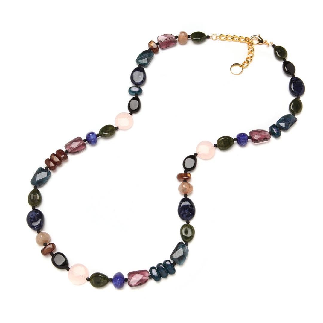Our strand of ethereal spheres, highlighted with dots of dreamy color, bring a perfect sense of calm & joy! May be worn long, doubled or layered. Specifications * Italian Resin & Glass * 90cm length * 55 grams * Adjustable brass chain & lobster claw closure * Made in Italy