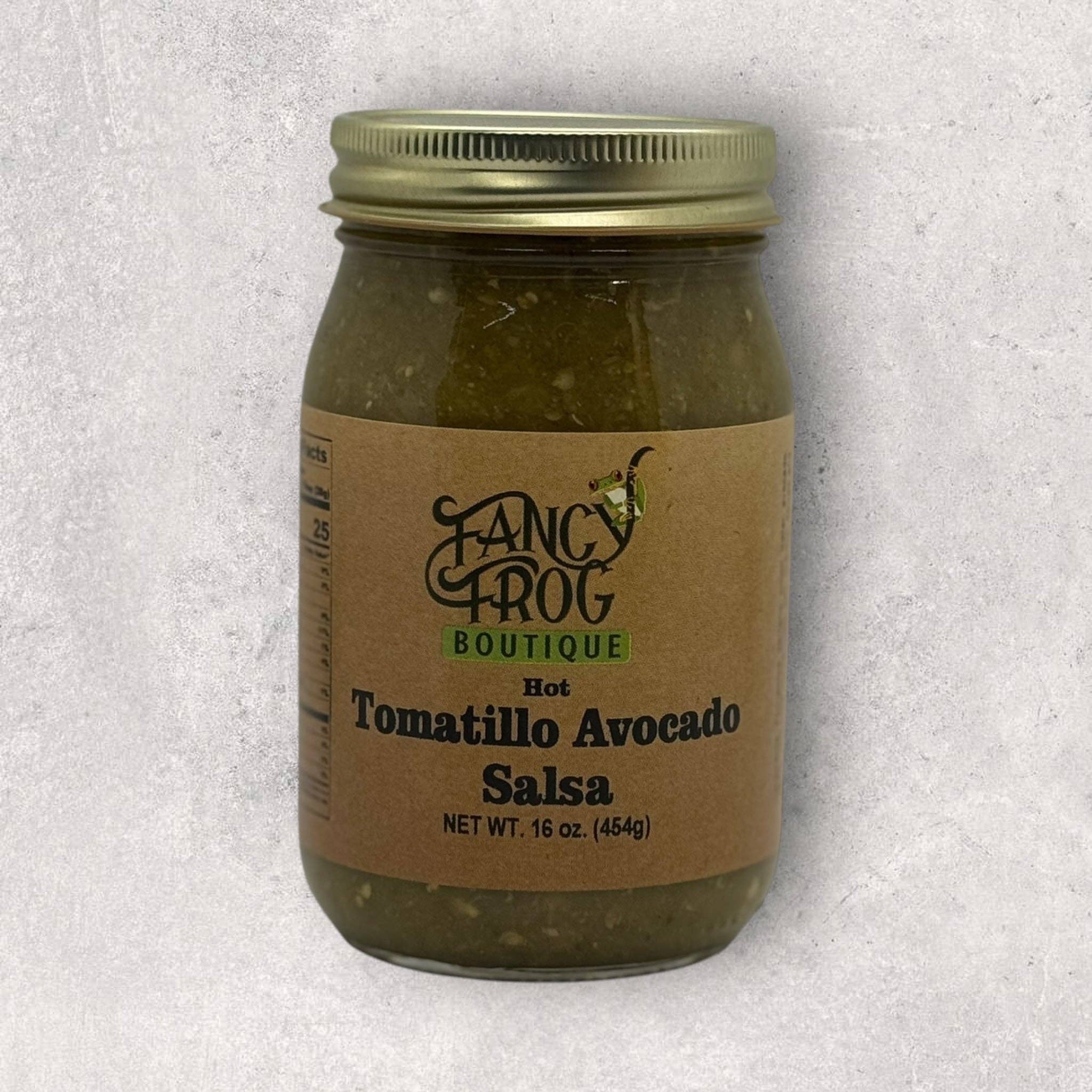A fresh and spicy green salsa, the avocado tones down some of the tangy of the tomatillo with a surprising kick coming from serrano peppers. Heat: Hot Size: 16 oz.