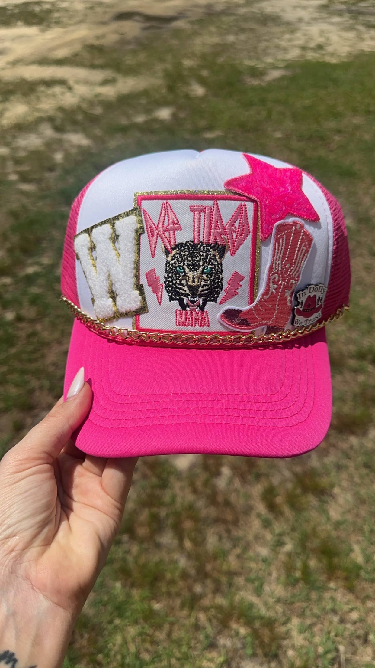 trucker hat patches 3” pink cowgirl boot patch iron on