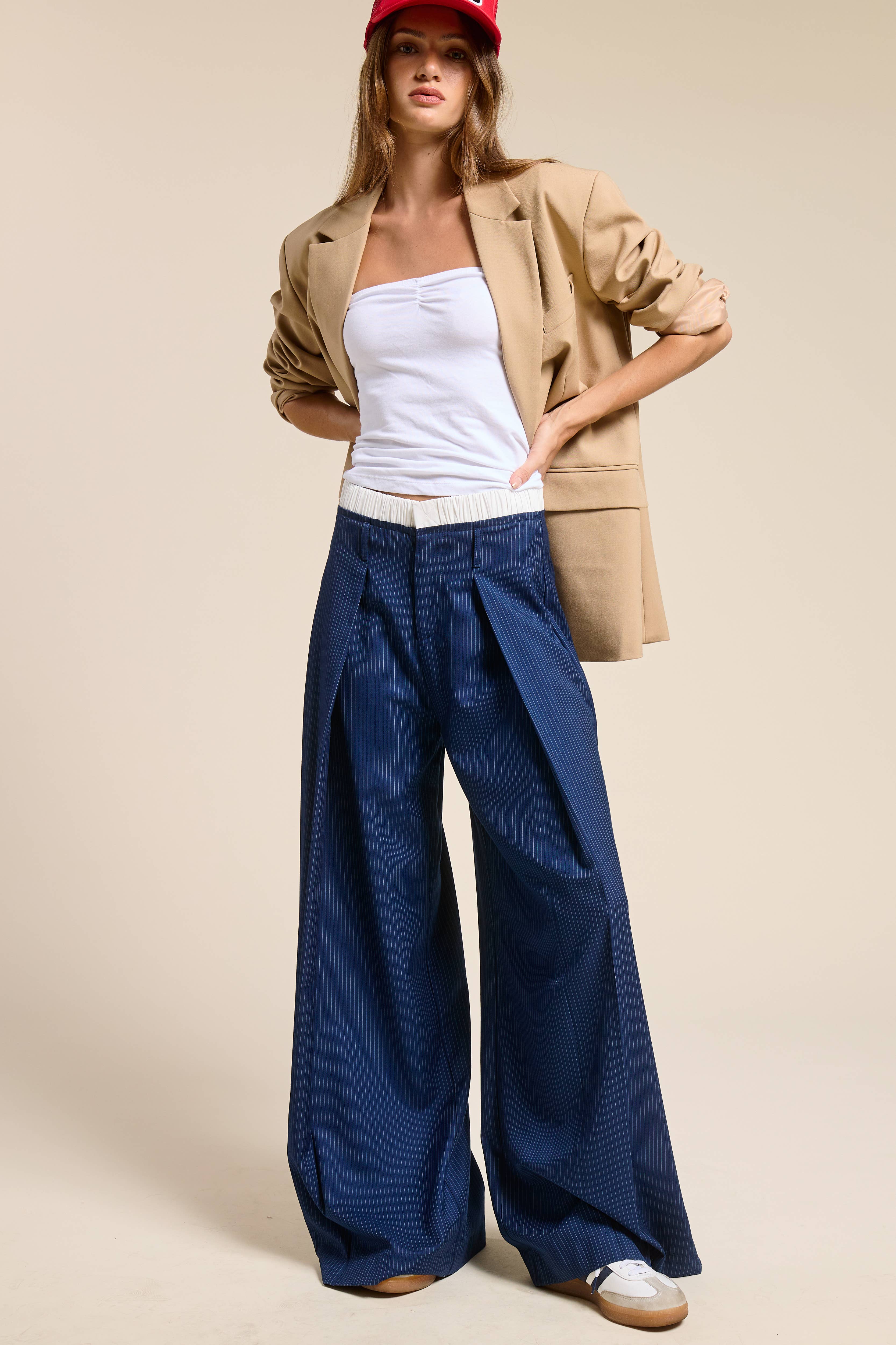 These chic pants combine the classic sailor aesthetic with a modern twist, featuring eye-catching faux gold buttons that add just the right amount of flair. The wide leg design allows for easy movement, while handy side pockets keep your essentials close at hand. Plus, the sleek side zipper ensures a flattering fit every time you wear them. Available in sizes XS-4X while supplies last.