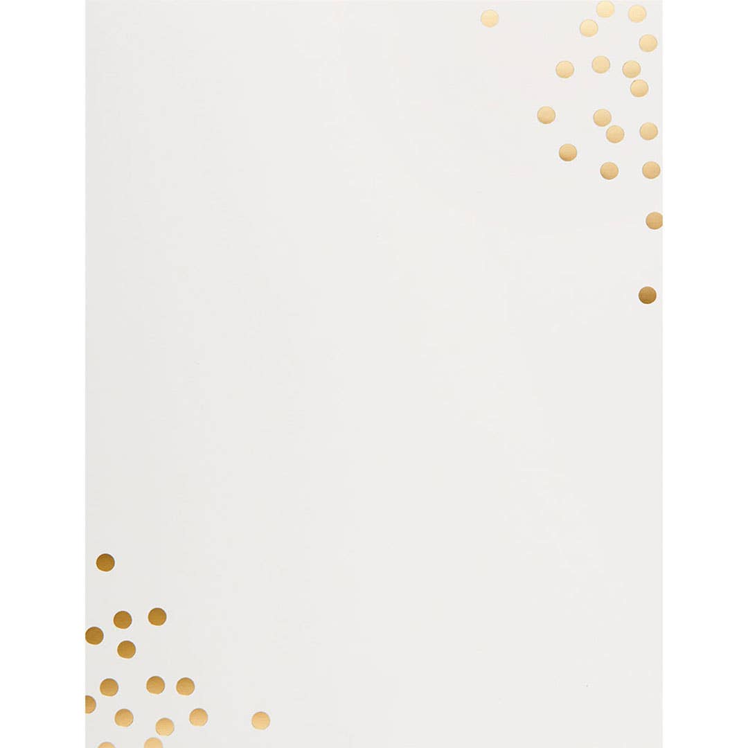 Process: foil-pressed Card size: flat 4.25"W x 5.5"H Paper: #110 cardstock Color: creamy white Envelope size: a2 Envelope color: creamy white Quantity: set of 8 Minimum: 3x per design
