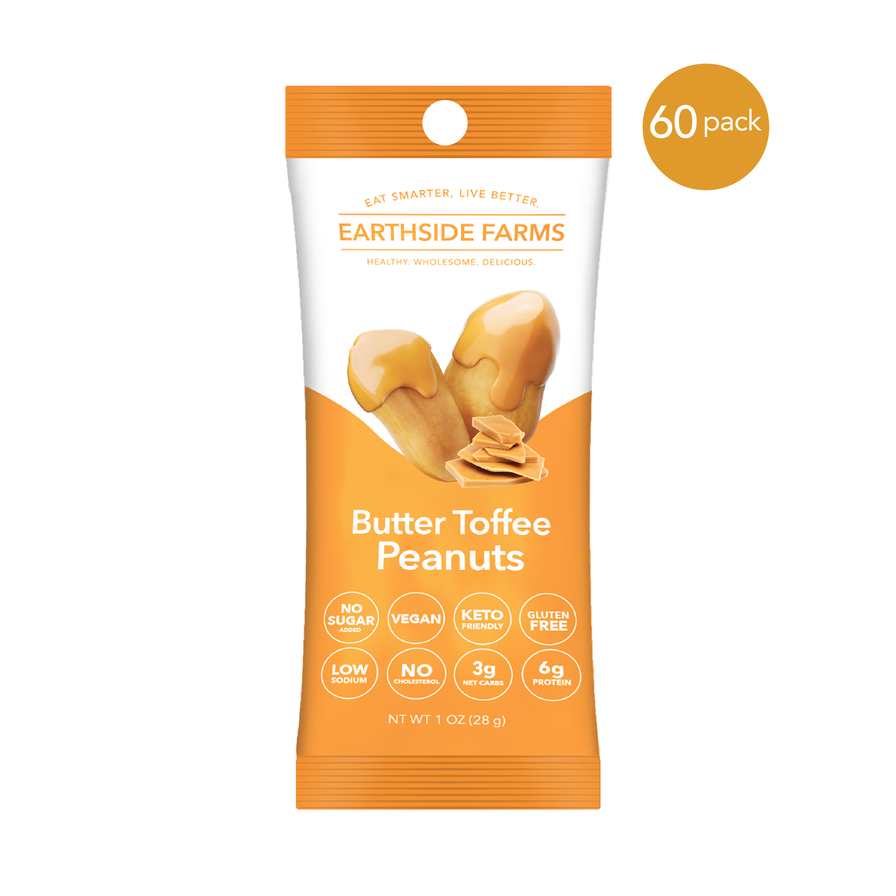 Introducing Earthside Farms Orange Ginger Almonds: the perfect blend of nostalgia and nutrition! These 1 oz peggable, single-serve packs are ideal for a quick snack or guilt-free treat. Our almonds are dry-roasted and coated with a delectable ginger glaze, made with real oranges and ginger and absolutely no added sugar. Whether you're on a keto diet, looking for vegan and gluten-free options, or just craving something sweet, Earthside Farms has you covered. With the holidays approaching, these better-for-you candied nuts are a fun addition to holiday goodie bags or a delightful sugar-free stocking stuffer. Kids will love the sweet taste, and adults will appreciate the health-conscious ingredients. Perfect for any season, Earthside Farms Orange Ginger Almonds are sure to bring smiles all year round. Try them today and taste the difference! **This case contains 40 1oz pouches of Orange Ginger Almonds**