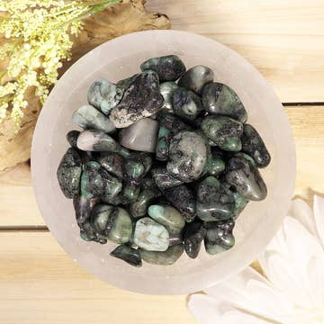 Note: These are natural gemstones, expect variance in color/pattern and size. These are stock photos, you likely won't receive the stones pictured except for specific listings. We do not accommodate requests for specific size or color/pattern crystals, all are chosen intuitively. Ethically Sourced. Often referred to as the Stone of Courage and the Stone of Truth, Amazonite empowers to discover your own truth and integrity. It grants the freedom to express your own thoughts and feelings, to set clear and strong boundaries, and to move beyond fear of judgement and confrontation. Amazonite soothes the chakras and aligns the physical body. It is especially beneficial to the Heart and Throat chakras, improving love and communication on all levels. Mixed sizes unless otherwise specified. Generally range from 15-30mm.