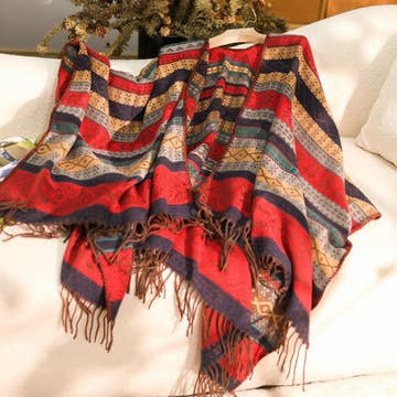 Our Kalya Cotton & Wool Shawl features a beautiful jacquard weave design with soft 60% merino wool and 40% cotton in vibrant jewel tones. This lightweight shawl can be worn as a scarf or a full wrap and comes in a range of beautiful jewel tone shades. -------------------------------- • Material: 60% Merino Wool, 40% Cotton • Shape: Rectangle • Care: Hand Wash with Gentle Detergent, Hang to Dry • Dimensions: 28" x 72" --------------------------------