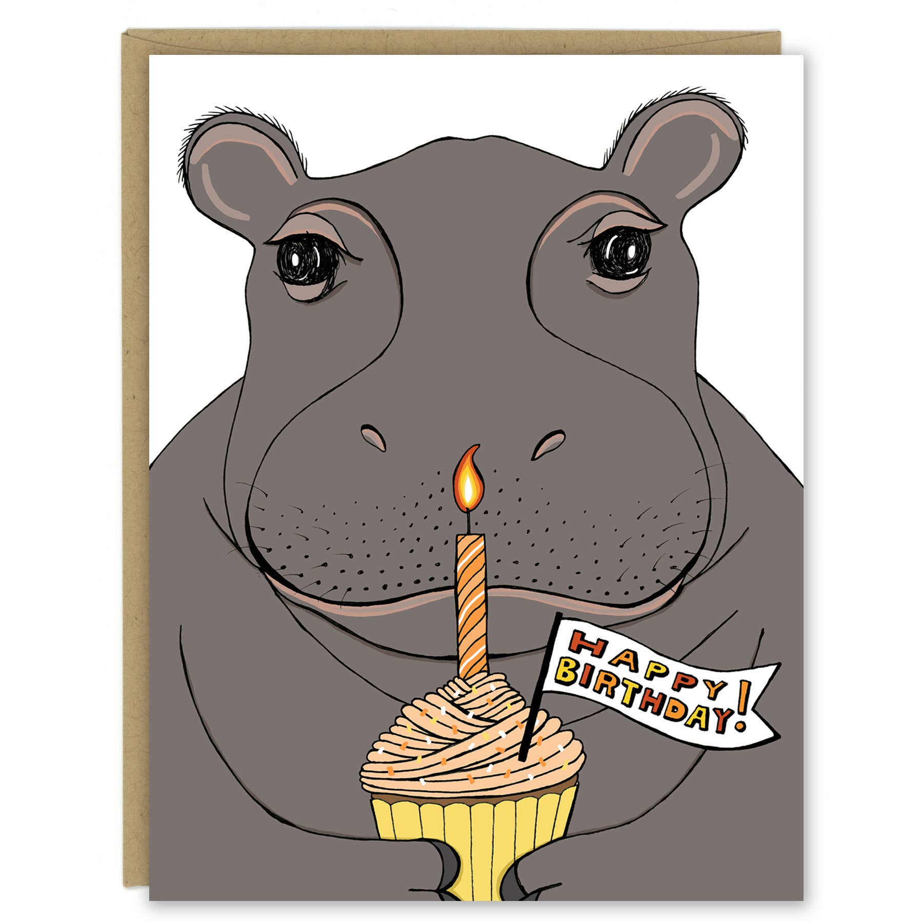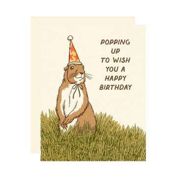 There's a beaver… he's got a pink frosted cupcake… and only because it's your birthday is he willing to give up that cupcake for you. This silly beaver illustration is a great way to send that special birthday message. A2 size. Printed on bright white linen card stock. Blank inside. Accompanied by a Michigan-made brown kraft paper envelope. Individually sleeved in open cello bags.