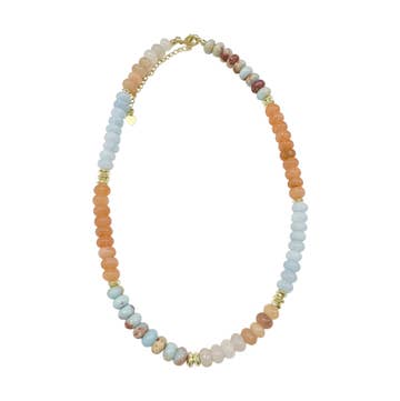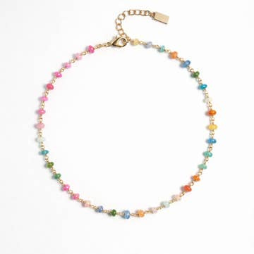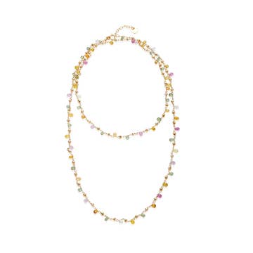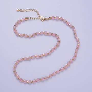 Tiny beaded pink opal choker with 10 gold vermeil drops. 12.5″ long with 2 inch chain extension.