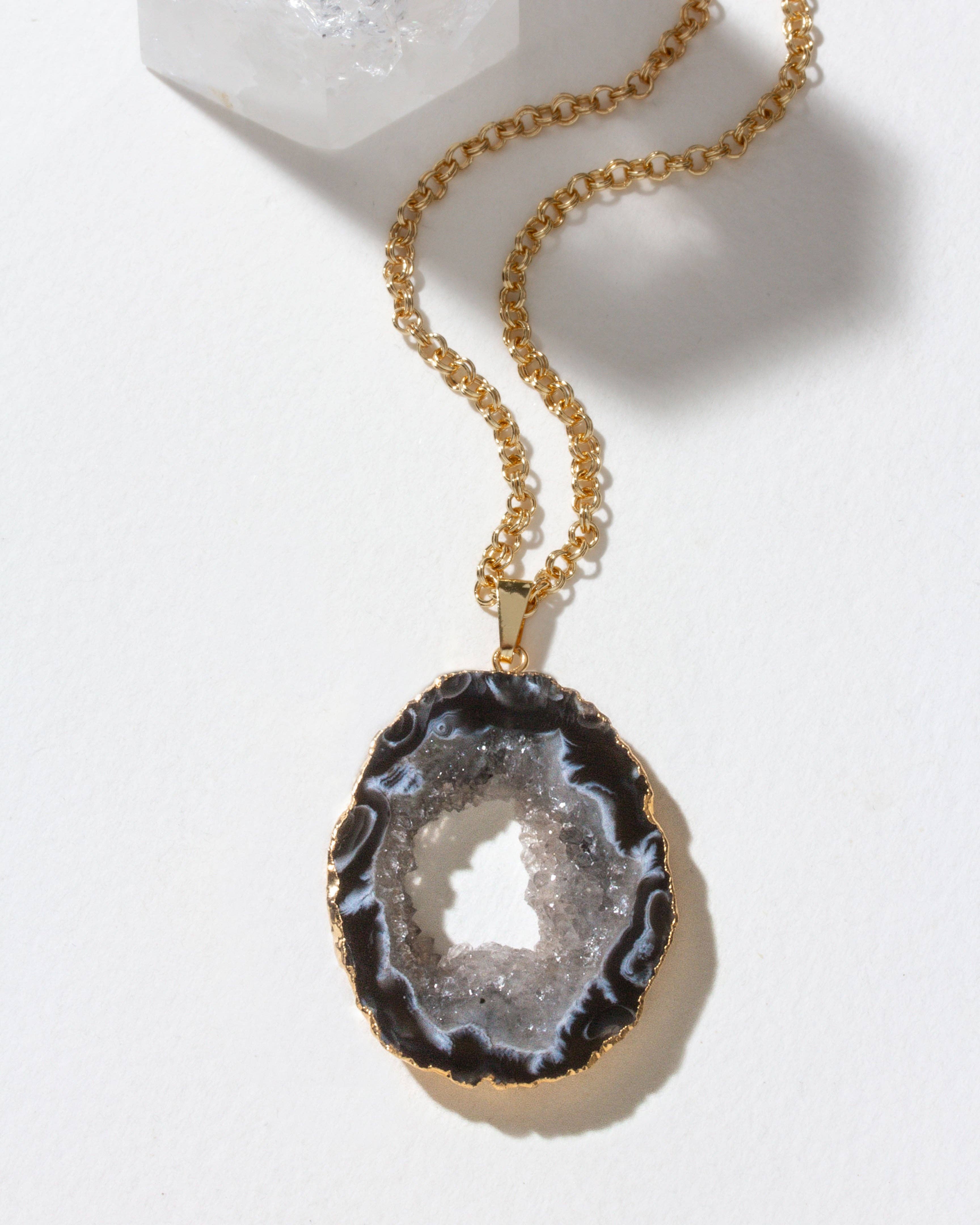 POSITIVITY • TRANSFORMATION • PROTECTION Snowflake Obsidian is dark and brooding for when you need a tough force on your side. Times of great change and unknown are when we are most vulnerable. This powerful stone will protect you through this transition, and carry you safely to the other side. Genuine semiprecious stone hand-wired to a gold-filled chain. 16" with optional 2" extender chain. Handmade in Brooklyn, NY