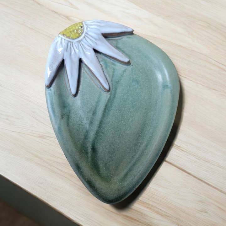 Here is a cute little pumpkin to brighten up your kitchen! Rest your utensils (spoons, tongs, ladles, etc.) on this joyous gourd and keep your countertop clean! This adorable dish functions as a spoon rest, but you can also use it as a jewelry holder, key-holder, snack plate, soap dish, cat/dog food dish... The options are endless :) All of our spoon rests are hand-formed in stoneware clay and hand-painted. This piece was hand-dipped in our lead free Sandstone glaze. Due to the hand-made nature of this spoon rest, please understand that no two are exactly alike. That is the uniqueness that comes with handcrafted goods! The spoon rest measures approximately 5 inches by 5.5 inches. Microwave, dishwasher, and food safe. Avoid extreme changes in temperature and do not use on the stove/on an open flame. Proudly hand-made in Effort, PA, USA. Materials: Ceramic