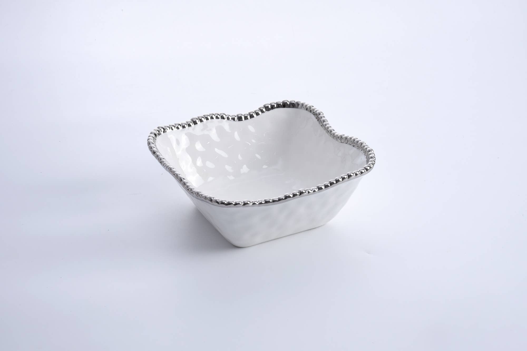 CER2691W 13" x 9" Oval Baking Dish from our Salerno Collection. Impress with your culinary skill and presentation by serving up delicious entrees or sides in these elegant oven-proof bakers. Gleaming white porcelain with lustrous silver beads in titanium. Food safe, dishwasher safe, oven safe to 550°. Easy Care.