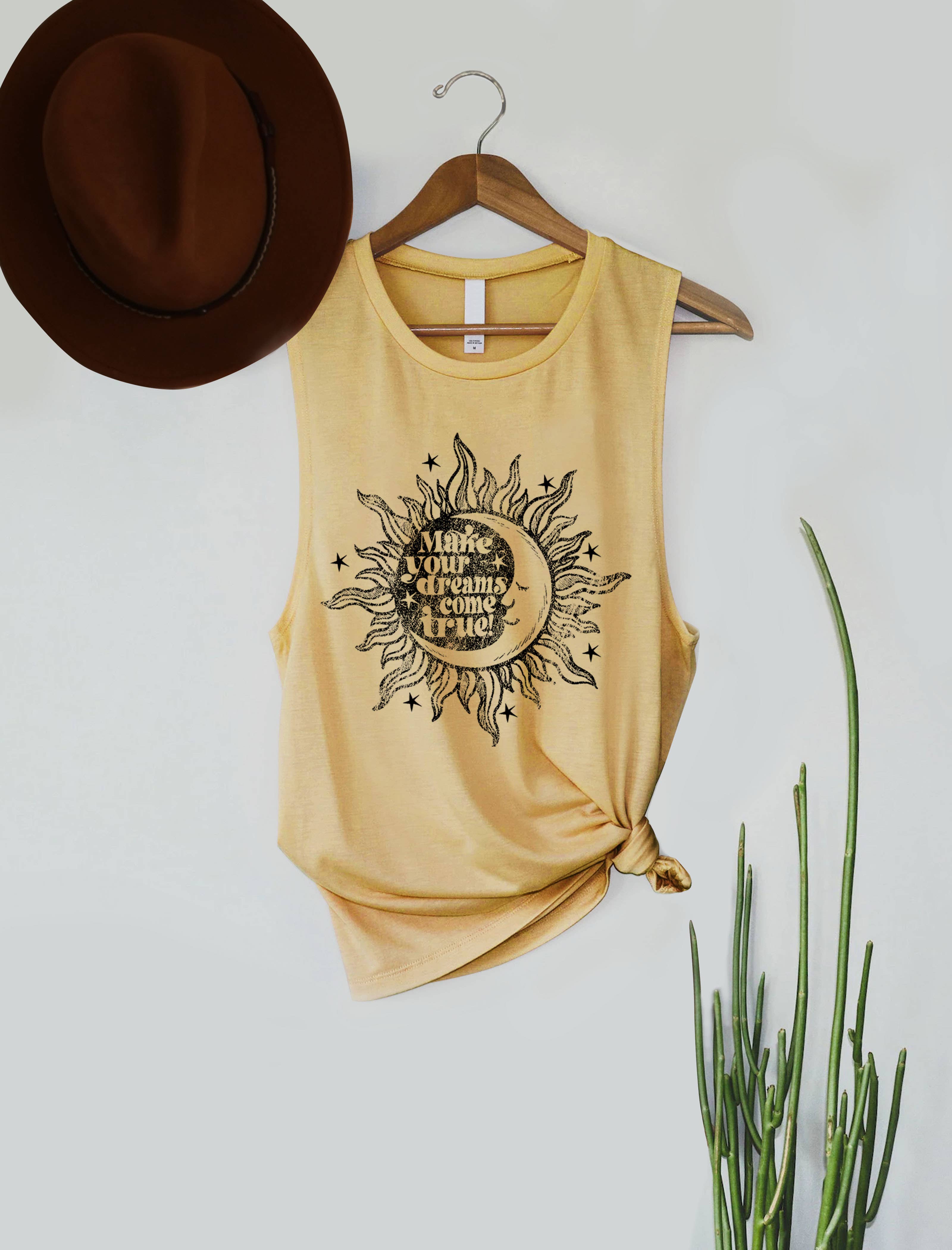 From LA Soul comes the Dream Catcher With Feather Tank Top, a casual yet stylish addition to your spring/summer wardrobe. Inspired by nature and vintage prints, this tank top features a thought-provoking "Not all who wander are lost" print. Made with a comfortable blend of 65% cotton and 35% polyester, it's perfect for those who appreciate a laid-back yet fashionable look. This LA Soul piece encapsulates the spirit of Los Angeles, bringing a touch of whimsy and retro charm to your everyday attire.
