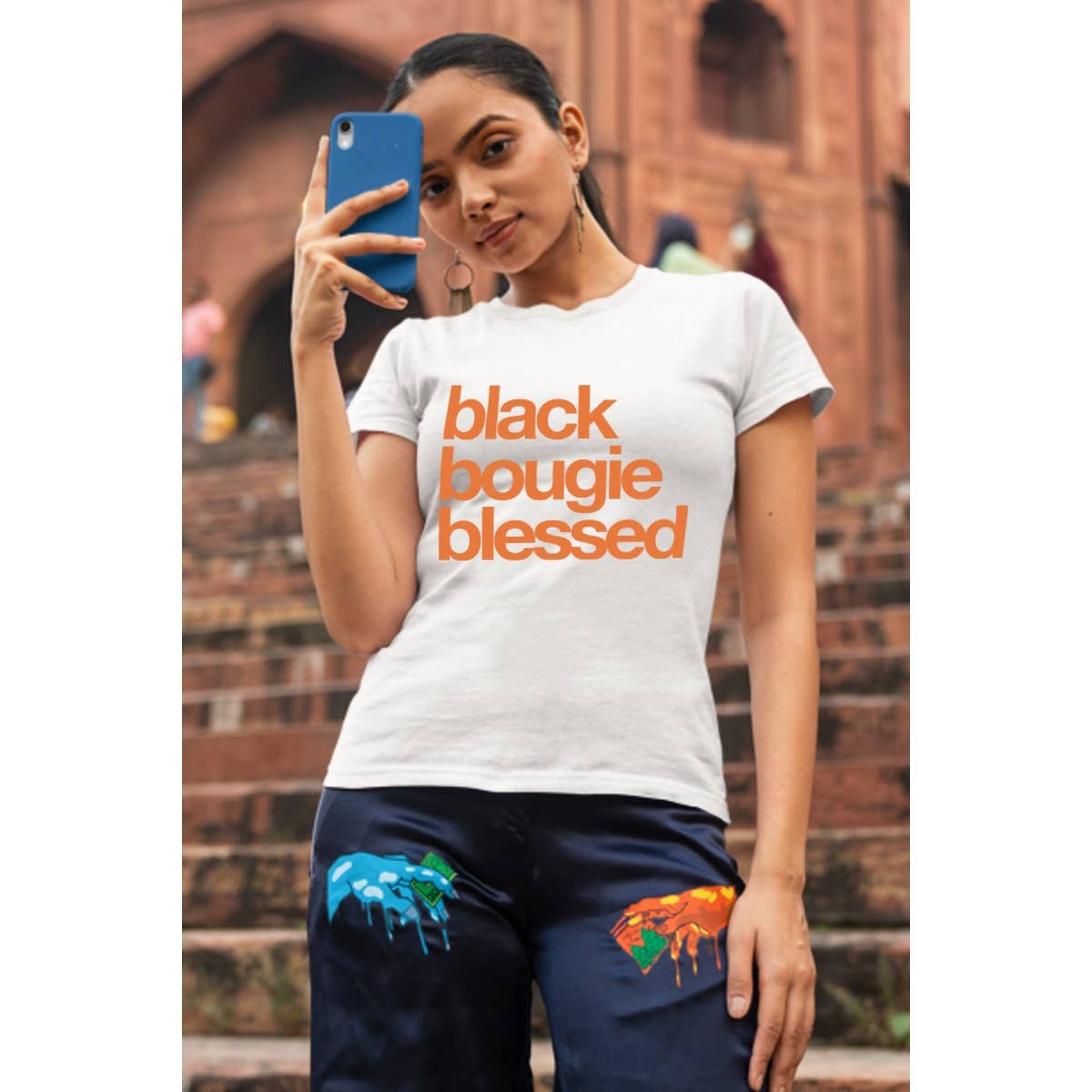 BLACK BOUGIE BLESSED GRAPHIC WOMENS T-SHIRT