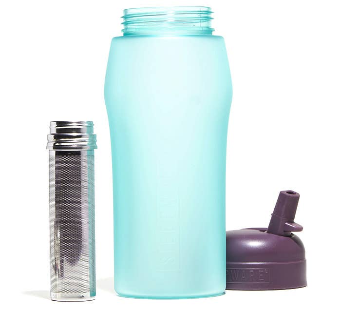 This leak-proof, stainless steel, tea tumbler is ready for any adventure! Its screw down lid and large volume set it apart from our original Mountain Tea Tumbler. Iced or hot, the double-walled insulation keeps tea fresh for hours. The ultra-fine stainless steel filter is large enough to allow for loose tea leaves of all sizes. Simply add fruits or herbs for a spa water experience. This unique design is bold and functional — ready to hydrate you on every expedition! Case contains: 3 of each color (Fog, Olive, Violet, and Black)