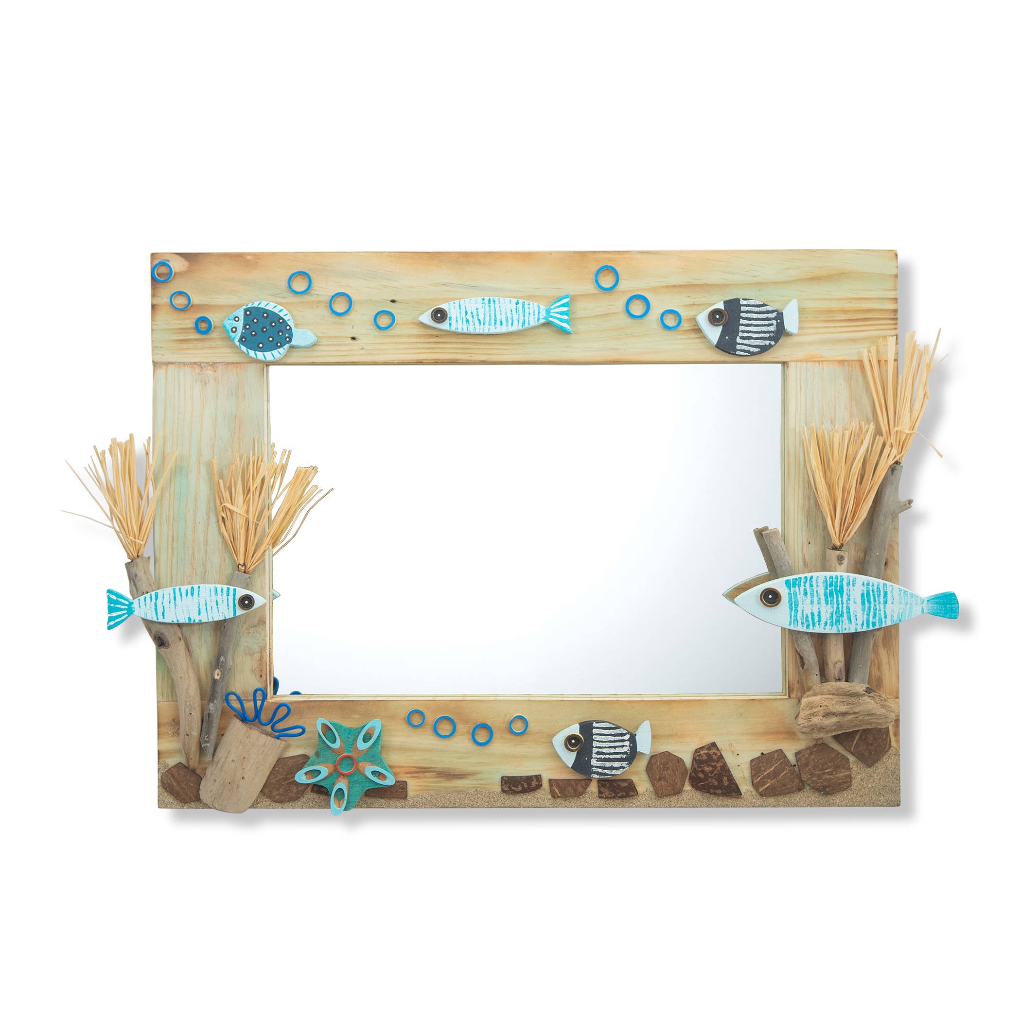Oyster shell wall mirror. This multi shell mirror was crafted to capture the inherient beauty of shells below the sea.