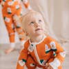 Le Breakfast Club presents Tartine de Mediterranean! 🍞🌊 Playful toasts prancing on a vintage mediterranean blue sea, complete with contrasting tangerine orange cuffs and crême white trims. This perfect all-in-one, gender neutral baby boy and girl romper is designed for optimal comfort and grows with your baby. Features: * Our custom blend of earth-friendly, eczema-friendly TENCEL Lyocell is so unbelievably soft, it feels like baby's second skin * Convertible footies for when your baby wants to go from footless to covered. We have even added signature grips that are hidden when folded up! * Convertible mitts to protect your baby from scratching themselves.