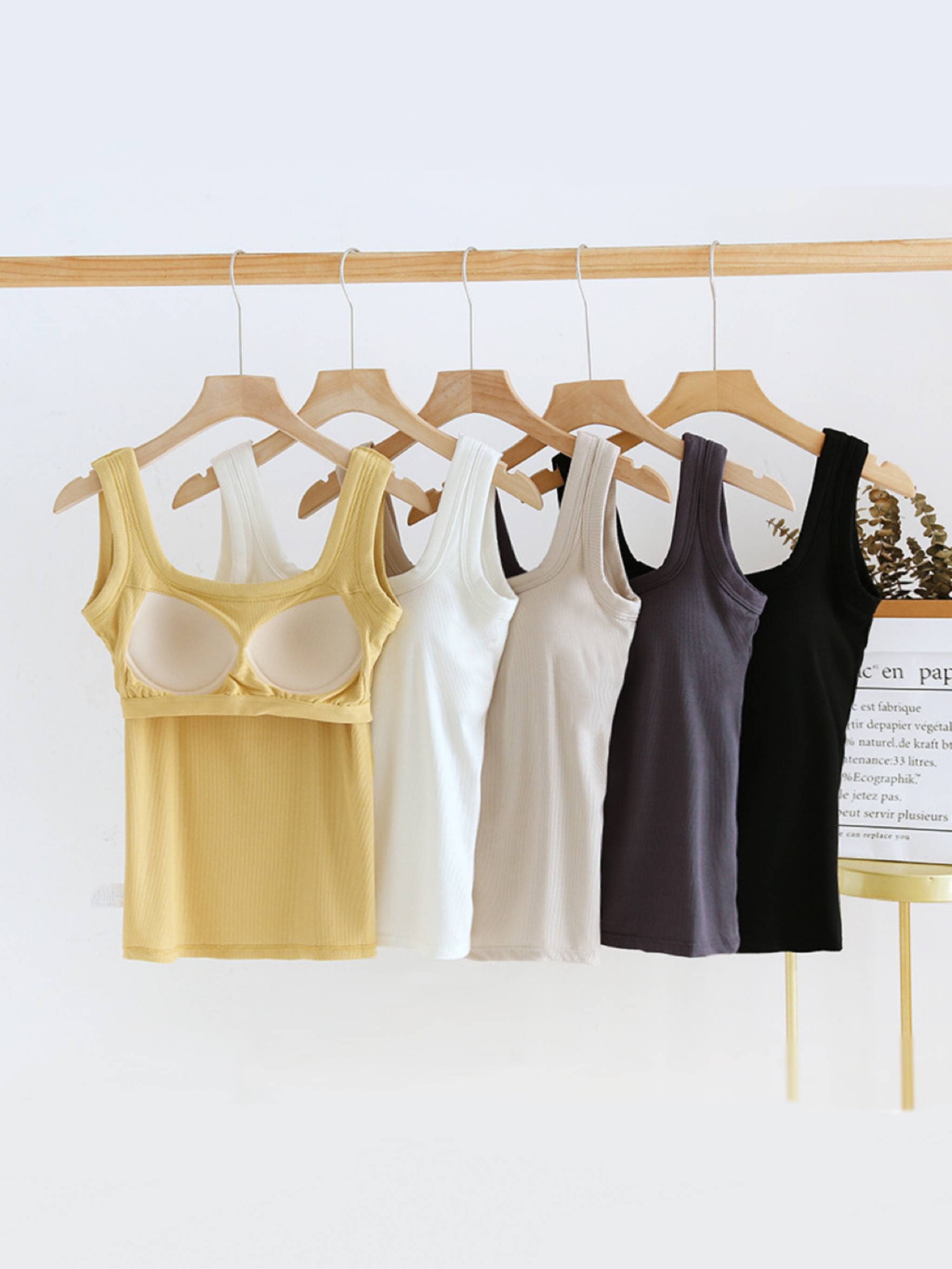 Essential basic rib tank top with built in bra in 13 colors