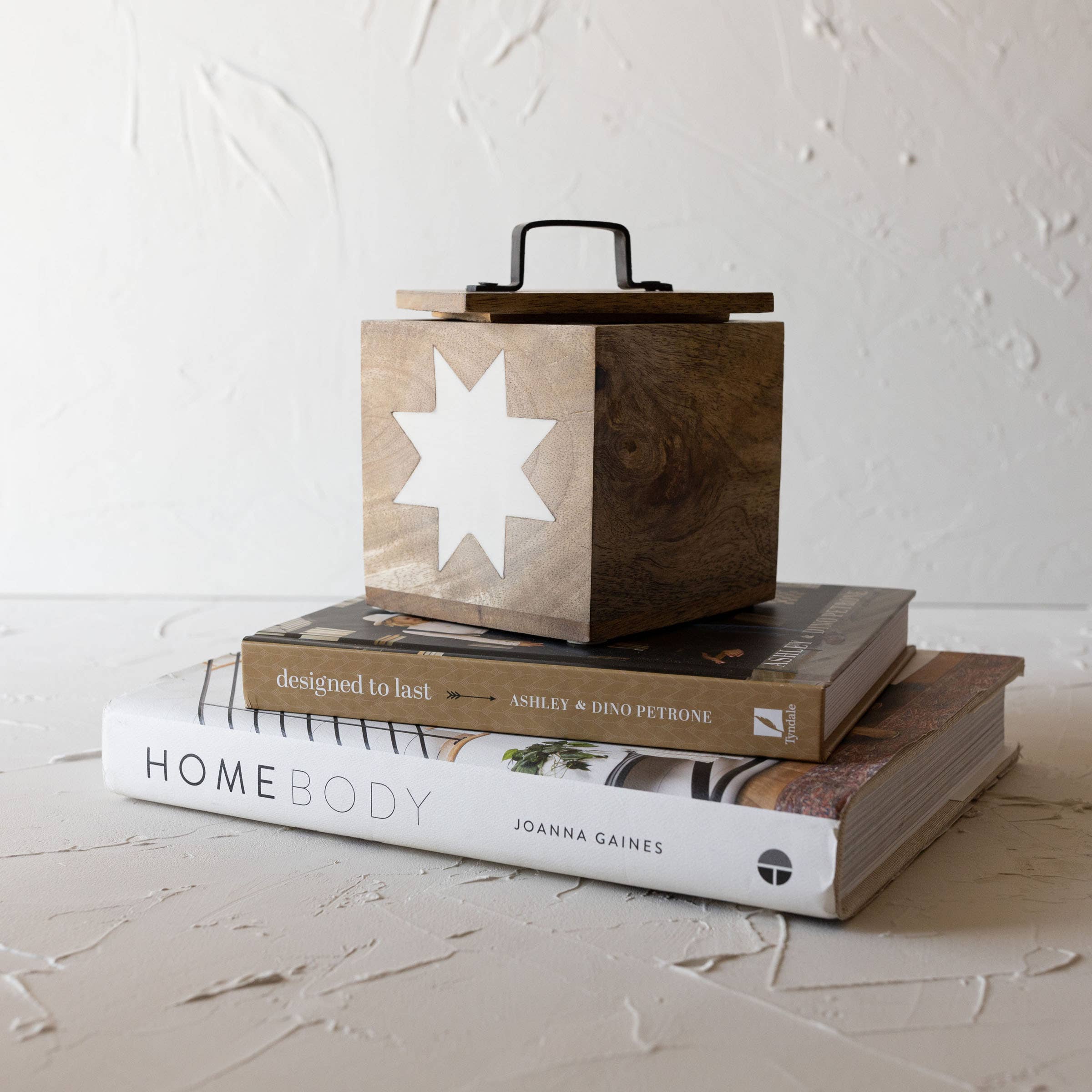 This wall hook is the perfect way to add a touch of cottage core charm to your home. Inspired by vintage quilt patterns and farm style decor, the hook is crafted from sustainable natural mango wood and white resin that is carefully pieced together by hand. Style in multiples for a functional wall decor look or use individually for entryway organization. -Functional wall decor that can be used as a single hook or hung in multiples for a larger storage statement. -The mango wood used is part of a sustainability effort in India. For each tree harvested, at least one is planted in its place. -1 keyhole hanger -Material: Mango Wood, Resin & Metal -Natural mango wood is paired with white resin to create a vintage quilt inspired design. -Perfect For: Farmhouse Home Decor, Home Decor Modern, Primitive Decor, Traditional Decor, Wall Decor, Coat Hooks, Hanging Storage, Wall Storage, India handicrafts