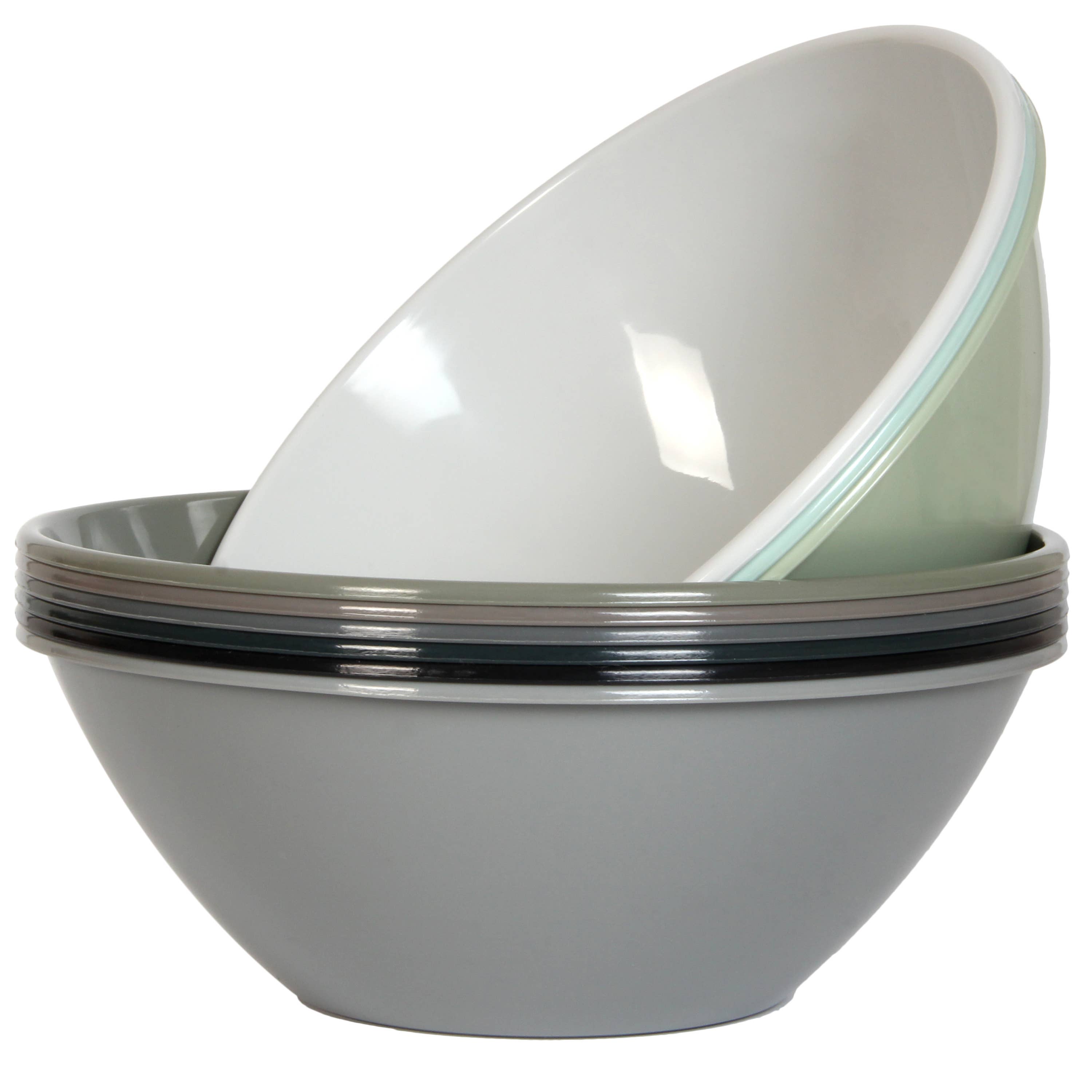 Plastic Mixing Bowls BEST VALUE - Total 5 Pack Mixing Bowls with Handle, in 5 Assorted Rainbow Colors. Come with 2 Pack Small Bowls, 2 Pack Medium Bowls, and 1 Pack Large Bowl. SAFE & STURDY - Made of Restaurant Quality Materials, Dishwasher Top Rack Safe. Reusable, Break-Resistant and Durable material is a safer alternative to glass or disposable dining ware. NO BPA, NO LEAD. GREAT FOR - Everyday meals, Cafe, Restaurant, Self-service area, Outdoor, Party, Kids, Home event, Patio, Games, Poolside, Picnic, Camping, RV, Beach and many more. Break-Resistant and Durable material is a safer alternative to glass or disposable dining ware. SIZE - 3 different size bowls. Large: Capacity 5L, 11 inch Diameter x 4.5 inch H. Medium: Capacity 3L, 9.5 inch Diameter x 6.5 inch H. Small: Capacity 1L, 6.5 inch Diameter x 5 inch H.