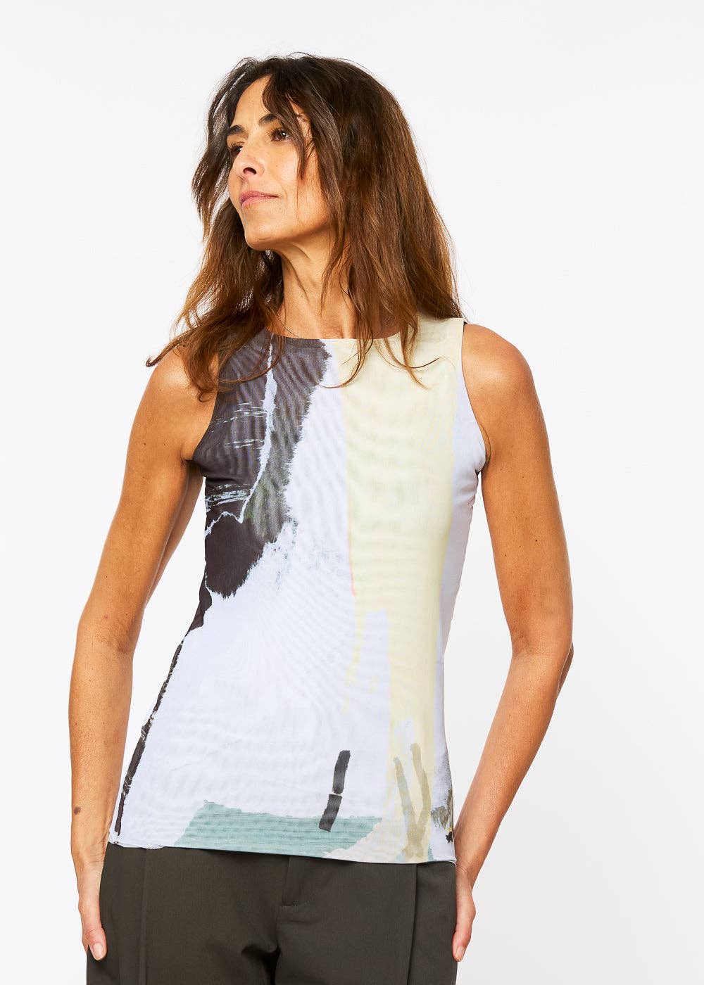 From our premium LaPiel collection, proudly made in USA. Silky soft mesh fabric, double-layer body and single sleeves. Original abstract Tidal print Available in sizes S/M and M/L 90% Nylon 10% Spandex Made in USA