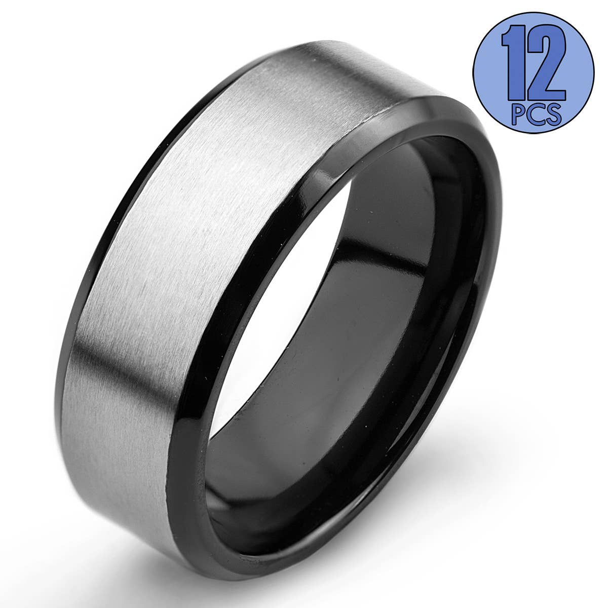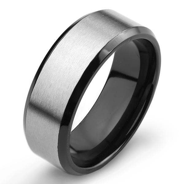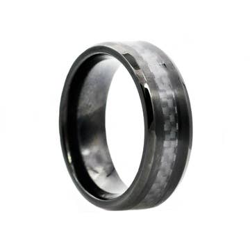 Men's Stainless Steel Carbon Fiber Overlay Glossy Domed Ring Add this ring to your choice of ring styles. The ring is crafted with durable stainless steel and has a carbon fiber center. The width of the band is 8mm and the thickness is 2mm.