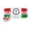 Secret Santa Small Hair Ties in Red, Green, and Clear offer a strong grip without damage, doubling as a chic wrist accessory when not in use. Your new favorite hair essentials all year round. Strong grip, no rip design for all-day hold Doubles as a stylish bracelet Durable and waterproof for all occasions Gentle on hair—prevents breakage, headaches, and creases Sold in packs of three.