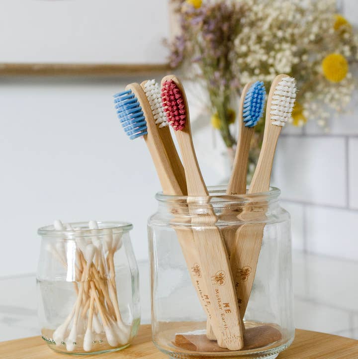 *Now with bio-based bristles! Every toothbrush you've ever used is still on this planet, unless it's bamboo! You can now brush responsibly with one of our bamboo charcoal toothbrushes. Experience the whitening benefits of charcoal for an impeccably fresh and clean feeling. The medium/soft bristles are bio based - made from castor oil and infused with charcoal. Complete with naturally antibacterial, antimicrobial and odor resistant bamboo handles. Comes with a shape etched in, so there isn't any household confusion. For larger families, you can color in the shapes to distinguish. Recommended: Dentists recommend to replace every 3 months. How to Dispose: Can be demoted to household cleaning, upcycled to identify seeds in the garden, or composted. Packaging: Kraft paper box with UPC.Â