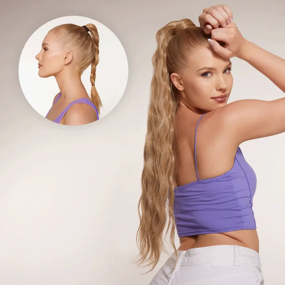 We proudly offer the highest quality 100% Remy Human Hair extensions. Ethically sourced and naturally full-bodied with a soft wave, our 18” Lite set is ideal for shorter or finer hair. These long-lasting extensions blend seamlessly, and can be cut, styled, and heat-treated with ease. WHAT'S INCLUDED 1 tester piece to make sure you have the shade that blends best with your hair Every package comes with 7 wefts: one 10", one 8", one 6", two 4", and two 3" pieces 1 reusable satin storage bag to preserve & protect your INSERT NAME HERE hair KEY FEATURES Length: 18 inches | 46cm Weight: 140 grams Style: Natural wave HOW TO USE Step 1: Start with dry, detangled hair and tie the crown into a top knot. Step 2: Part hair near the nape, leave 1–2” down, and clip in the 10” weft. Step 3: Continue up—use the 8” weft ear to ear, 6” at the crown, and smaller wefts (4” & 3”) on the sides. Step 4: Let down your top knot, brush over the wefts, and enjoy your new length!