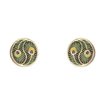 Peacock Feather Fabric Button Earrings