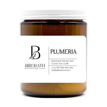 Smells just like a bouquet of Plumeria flowers with tropical fruits and floral notes. Perfect for a spring or summer go-to scent! *4 oz. glass jar candle *All natural soy wax *Phthalate free fragrance *Hand poured *Cotton core wick, free of lead and zinc *Dye free All of our candles are made from American grown soybeans.