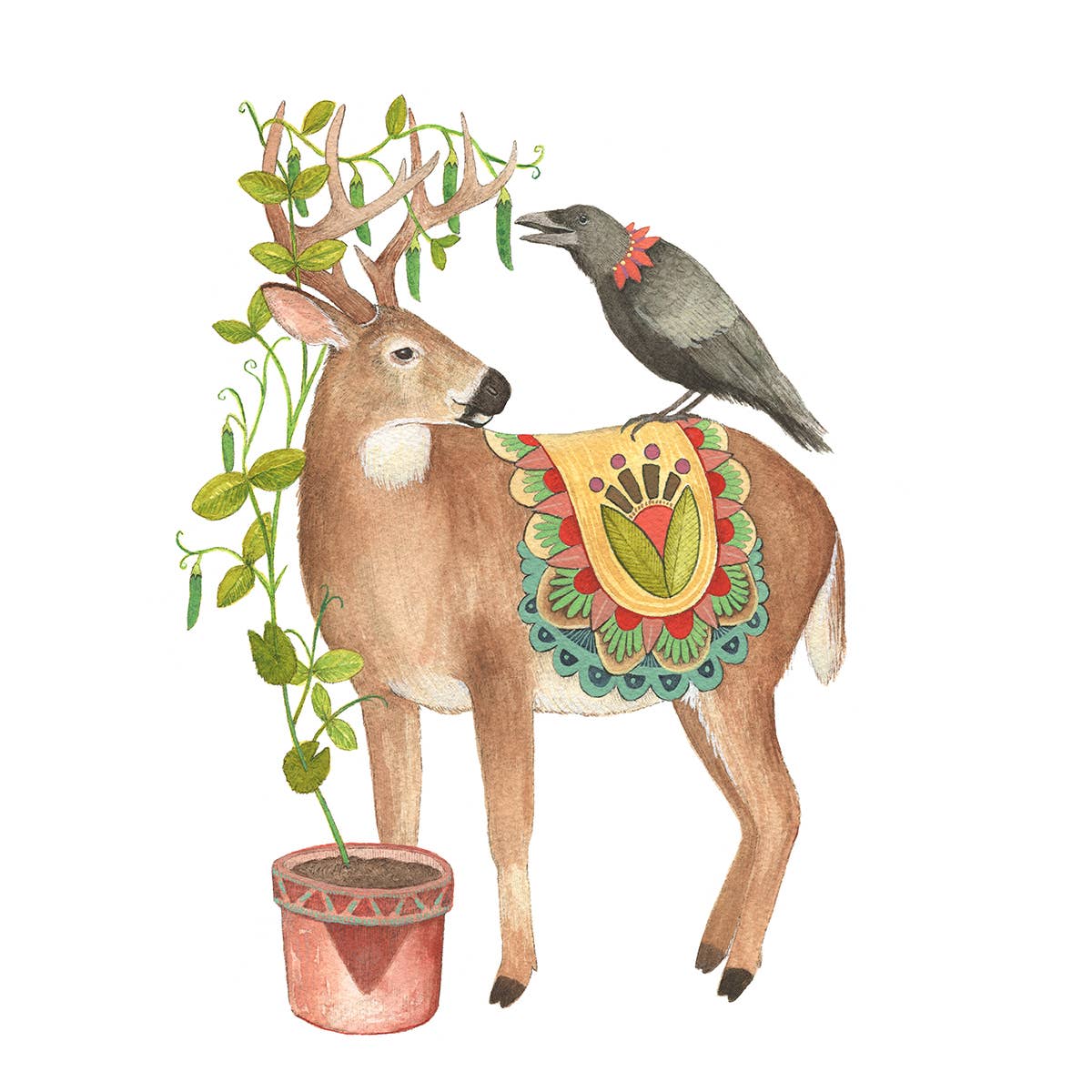 This is a quality reproduction of an original illustration. The original was drawn in pen and then painted with watercolor on paper. The Epson paper this is printed on has a smooth, matte finish that gives the long-lasting and lightfast inks excellent clarity. Each print is signed by the artist and packaged in a clear archival sleeve with a rigid backing for easy retail display. This print measures 8"x10".
