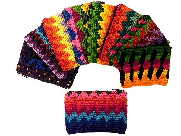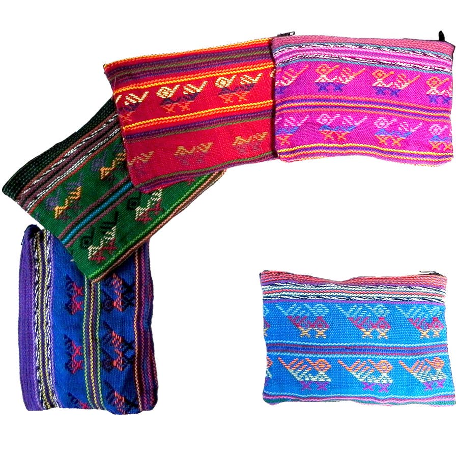 Wholesale Small Woven Tribal Guatemalan Single Zipper Coin Purse Pouch