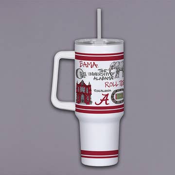 Ice cold sips ❄ Our fan-favorite 32oz Insulated Tumbler features a slim profile, making it cup holder-friendly and comfy to hold. This Straw Tumbler features a push seal lid with removable straw, to help keep sips ice cold 'til the last drop! Saturdays are for Football and Tailgates! These one of a kind designs by Rachel Walker display what makes your college town so special on a Saturday! - Holds up to 32oz - Keeps drinks cold 24+ hours and hot 3+ hours - Fits most standard cup holders - Dishwasher safe, top rack only - Double-walled, vacuum-sealed, and copper-plated - Condensation-free and non-breakable - Constructed of 304-18/8 stainless steel - Built-in silicone coaster base prevents slips, drips, and scratches - Includes an X-Large Straw Lid with flexible silicone gasket - Includes a plastic straw with removable silicone tip - Dimensions: 8.8" H x 4" W (lid included); Base 2.8" diameter; Straw Length with tip: 12" Weighs: 1lb when empty