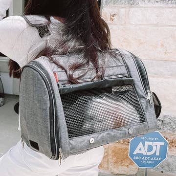 358 HIDEAWAY™ BACKPACK Prefer Pets Hideaway™ Backpack is the (NEW!) thoughtfully-designed, safe and secure carrier for life on the go with small pets. This convertible carrier is an upgrade of the Original Pet Backpack, adding more privacy covers while still giving you the portability of a duffel with the comfort and convenience of a backpack! A zippered side panel allows for your pet’s easy entry and exit. Mesh windows on three sides provide ample ventilation making this carrier the ideal choice for your pet's health and comfort. Each panel features a roll-up-n-down privacy cover to shut out distractions for discreet travel. This carrier features a large, deep pocket to hold treats and waste bags. A faux-fur, machine-washable floor mat keeps the carrier upright from the base. This carrier features water-resistant canvas fabric and complies with major airlines’ in-cabin carry-on regulations. Luggage tag and Pet ID card included.