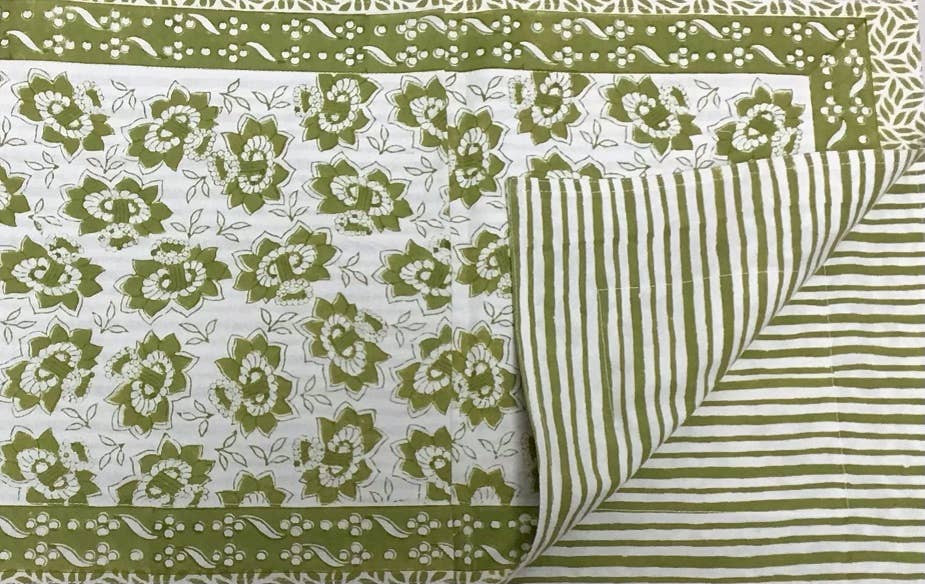 All printed by hand using a carved wooden block on a hand spun and hand woven organic cotton fabric and then hand dyed in natural dyes. The wooden block was placed in a unique way - to create this pattern that reminds us of the golden rays. Hoping to bring home some sunshine. Pairs well with Hope tablecloth and Golden Ray napkins ! hand block printed using wooden blocks hand dyed in Natural Dyes color - Mustard Yellow & White fabric - organic cotton size - 16"w x 90"l