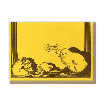 This high-quality greeting card measures 5 x 7 inches. It is blank inside. The card ships in a clear cello bag along with an envelope. This design is also available as a print and magnet. Made in the USA.