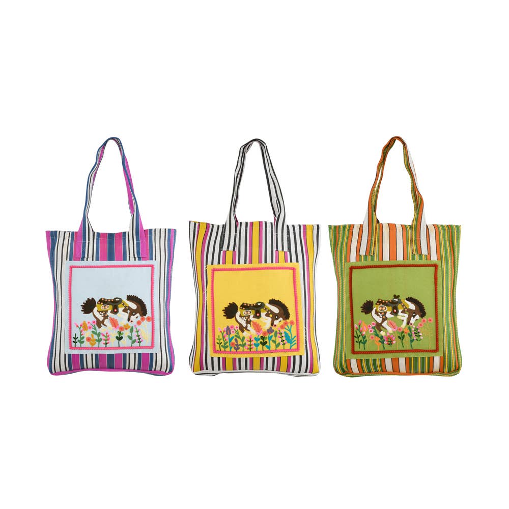 • Product: Set of 3 Donkey with Sarape Fabric Totebags • Size: 14 x 16 in (35.56 x 40.64 cm) • Size: 19 x 20 in (48.26 x 50.80 cm) • Care: Machine Wash, Cold Water, Gentle Cycle • Set: Sold as a set of 3 • Weight: 0.226 kg (0.5 lb) • Country of Origin: India • SKU: 3ABBG119_MLTL