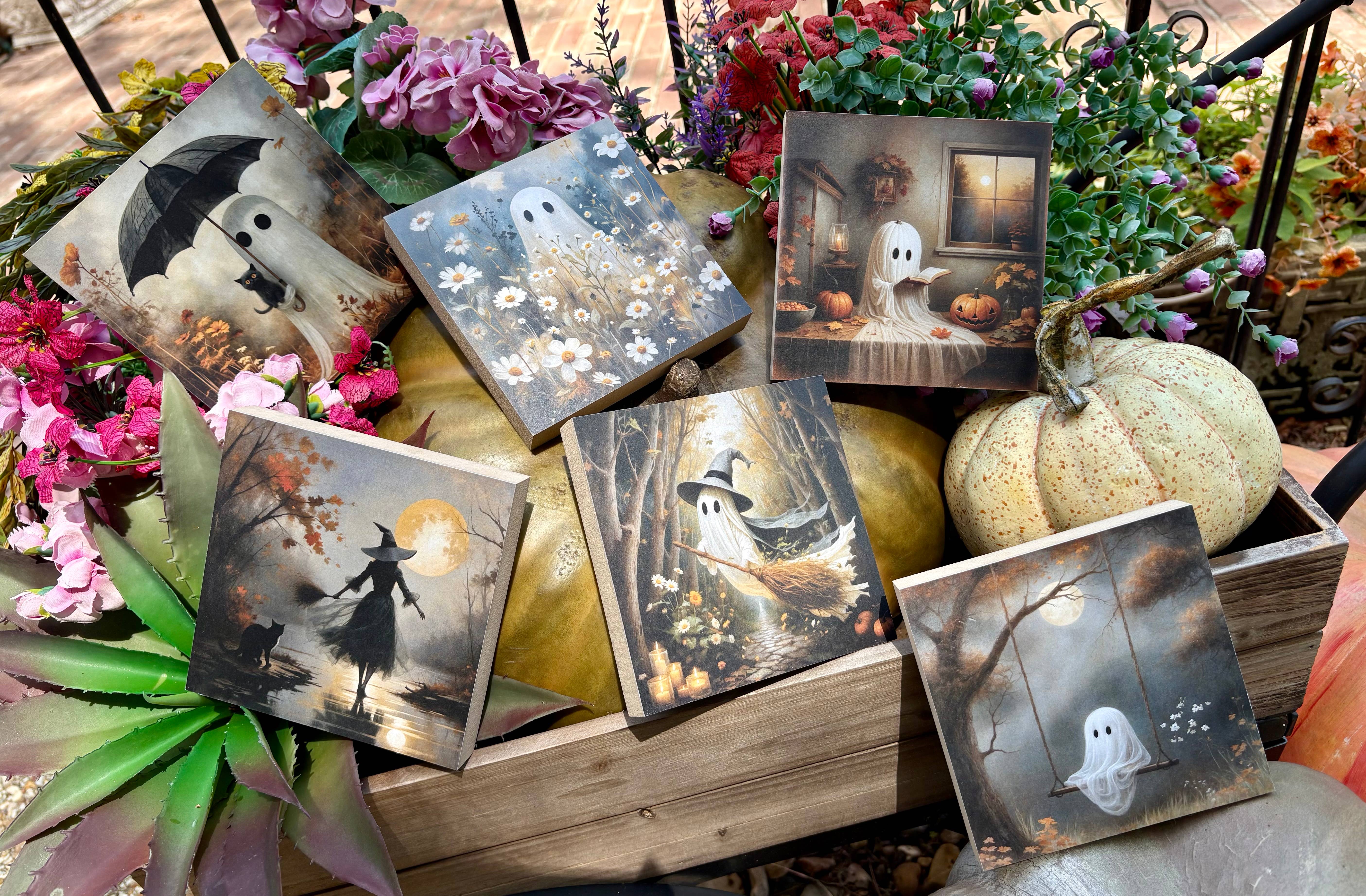 Add a dash of spooky sweetness to your space with our ghost-themed mini block! Measuring approximately 5x5 inches and crafted from sturdy 3/4" MDF, this petite piece brings playful charm to shelves, desks, or cozy nooks. With its gentle ghostly design and soft, neutral palette, it’s the perfect touch of Halloween spirit—without the fright. Ideal for layering with other decor or standing solo as a subtle statement.