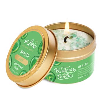 Light this healing Wellness Candle® to create an inspiring environment filled with warmth, joy and delight! The spicy combination of cinnamon, clove bud and lemongrass along with the comforting and life-giving energy of citrine creates a liberating and uplifting experience. The Wellness Candle® is a healing candle like no other! Each candle infusion is crafted around a specific intention and made using a hypoallergenic + clean burning blend of pure beeswax, organic coconut oil, therapeutic grade pure essential oils and natural crystals. Handcrafted in Portland, OR by 3 generations of women. Free of zinc, lead, soy, paraffin, artificial dyes, fragrances & GMO's. Burns for 20 hrs (Travel Tin) or 40 hrs (8oz Glass)