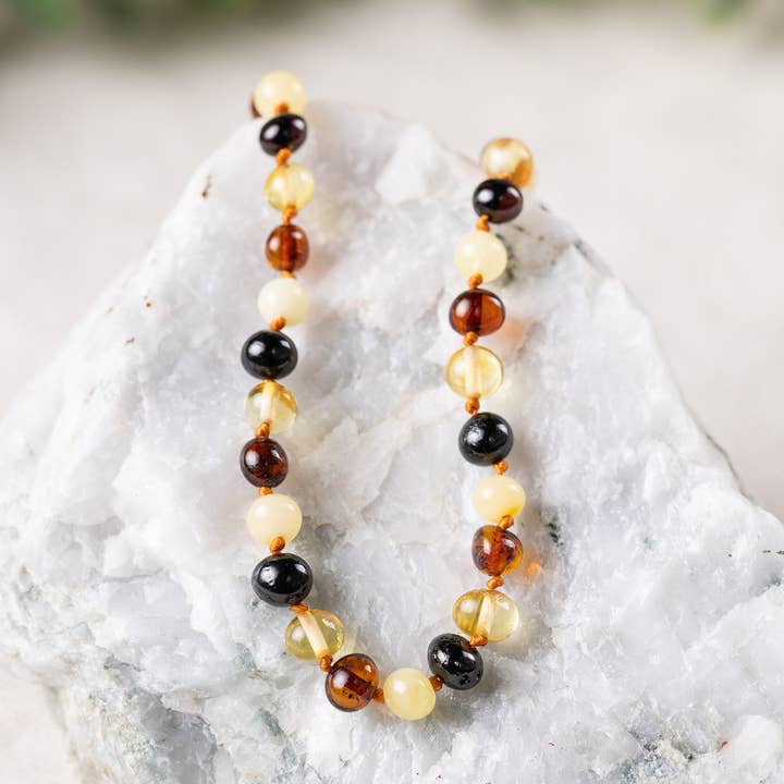 🔆 Features Baltic Amber for sunshine, vitality, and balance. 🔆 Created using 5-7mm genuine, polished Baltic Amber beads. 🔆 Jewelry inspired by nature! Our jewelry is handmade using natural gemstones. Because of this, each piece we create is unique and may vary slightly in color, size, and shape. 🔆 Handcrafted and lovingly packaged in North Carolina by our small team of women. ABOUT BALTIC SEA AMBER Baltic Amber, aka "Gold of the Sea" or "solidified sunlight," is one of the world's oldest and most envied treasures. It is a fossilized tree resin formed by light and life, preserved by time, and washed up on the shores of the Baltic Sea. It is warm to the touch and light to wear. Baltic Amber is revered for its high concentration of succinic acid. Each bead is a beautiful and unique piece of history - a fossil from an ancient forest! **Each adult bracelet is handmade on premium stretch cord for easy on and off.