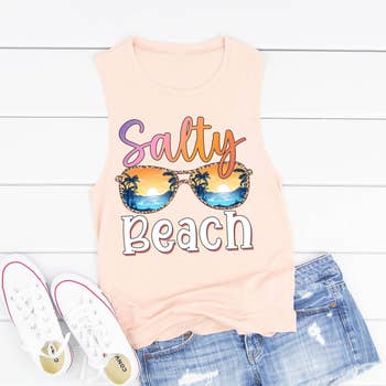 Ink on tank is silver metallic and looks great on the heather grey racerback. Designed with 100% airlume combed and ring-spun cotton. This go-to tank features a flattering racerback and is relaxed fit. Small: 16" x 19", medium: 16 3/4" x 19 3/8", large: 17 3/4" x 19 7/8", XL: 18 3/4" x 20 3/8".