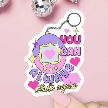 Retro Gamer Holographic Sticker For Water Bottle | 90S Style | Waterproof Vinyl Decal 90s tamagotchi inspired holographic sticker. Easy question: "Cry?" with an even easier answer... yes. About 3" by 3" Handmade and packaged with love~