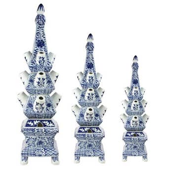 Cobalt Guild offers an assortment of blue and white porcelain vessels from the antiques markets of Jingdezhen, a town long distinguished by imperial patronage. This piece is a multi-part tulipiere vase in a fresh green and white palette, 42 1/2" x 11" SKU C633 Perhaps the tulip know the fickleness Of Fortune’s smile, for on her stalk’s green shaft She bears a wine cup through the wilderness - Hafiz tea