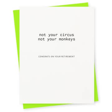 SKU: GC-1198 Made in United States Card Count: 1 Color: Purple and White Is Set: Individual Occasion Theme: Retirement Recipient: Everyone and Friends Season: Year-Round Theme: Empowerment Tone: Funny Product Language: English Weight: 14.17 g (0.5 oz) Dimensions: 14.6 x 11.4 x 0.3 cm (5.8 x 4.5 x 0.1 in) Packaging: Recyclable