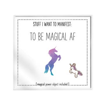 Stuff I Want To Manifest : To Be Magical AF ...and what will your superpowers be.... Make this the year of your dreams by choosing everything you want to manifest and make come true! Let's DO THIS! Surround yourself with signs that keep you on track! Each 3 x 3 package comes with a manifesting card and instructions on how to manifest, plus a super attractor Magical Power Object to carry with you or pin to your vision board to make it come true. You can keep it all together in the bag or carry the Magical Power Object in your purse or pocket separately! Slip it into greeting cards, gifts, pockets or purses. Attach it to your vision board, mirror or altar. Magical Power Object may vary*